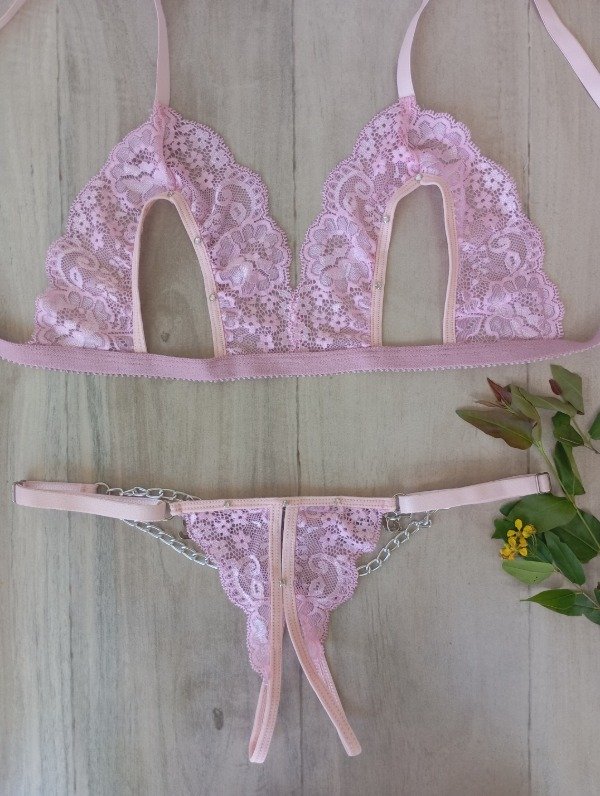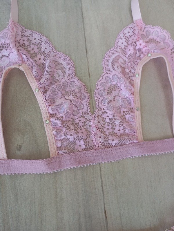 Less strass abierta con frase y corpiño abierto con strass