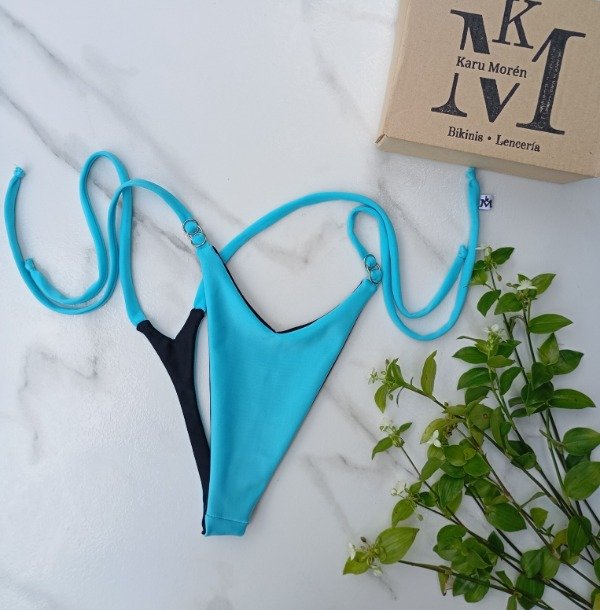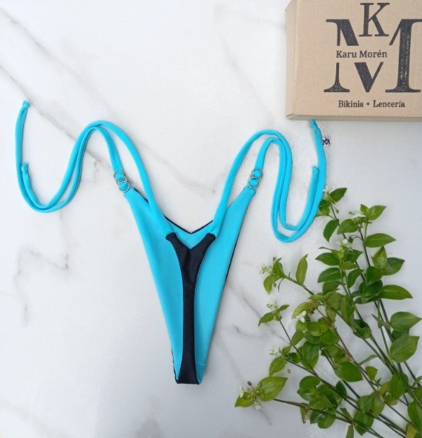 Micro en V , 2 colores, con detalles en tiras